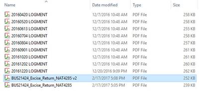 Open the most recent Excise Record. The date should be recorded at the beginning of the file e.g. 20170217