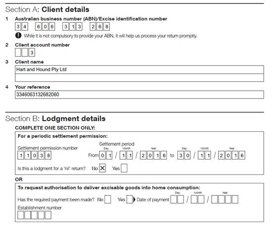 If there has been no pick-ups or stock removal from bonded areas during the settlement period, you still need to complete the excise lodgment form.