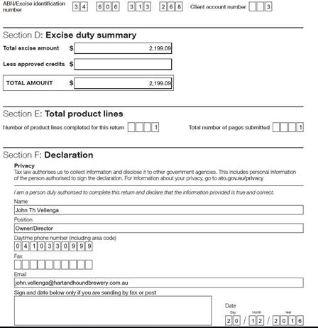 The form can be found online at https://www.ato.gov.au/uploadedFiles/Content/ITX/downloads/BUS21424_Excise_Return_NAT4285.pdf or a partially completed form with our details in Google Drive under the following directory.
